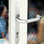 HUACI SP03SL114 uPVC door handle with narrow plate is designed for profile doors, and suitable for most of the European mortice lock.
